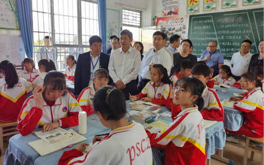 根據(jù)安順日報(bào)、赫章新聞聯(lián)播等當(dāng)?shù)孛襟w報(bào)道,近日教育部副部長鐘登華率教育部科技發(fā)展中心調(diào)研組,深入貴州安順、赫章等地區(qū)調(diào)研指導(dǎo)教育脫貧攻堅(jiān)工作。在赫章縣,鐘登華一行先后到平山鎮(zhèn)初級(jí)中學(xué)、赫章縣職業(yè)技術(shù)學(xué)校、城關(guān)第三小學(xué),深入多媒體教室、學(xué)校食堂等進(jìn)行實(shí)地調(diào)研,并召開專題座談會(huì),著重了解當(dāng)?shù)亟逃畔⒒ㄔO(shè)及應(yīng)用、疫情防控、教育發(fā)展等情況。