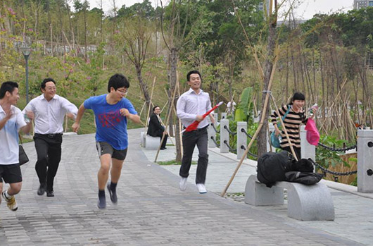 為提高團(tuán)隊(duì)凝聚力,加強(qiáng)總部支撐體系、研發(fā)體系和營(yíng)銷(xiāo)體系交流,由公司人事部組織“首屆‘捷飛杯’團(tuán)隊(duì)體育對(duì)抗賽”。對(duì)抗賽共設(shè)置五個(gè)團(tuán)體項(xiàng)目,分別為:拔河比賽、雙人運(yùn)氣球、接力賽跑、跳繩和籃球比賽。雙方經(jīng)過(guò)激烈角逐,營(yíng)銷(xiāo)體系贏得籃球、雙人運(yùn)氣球以及籃球比賽項(xiàng)目勝利,以3:2總比分險(xiǎn)勝總部研發(fā)和支撐團(tuán)隊(duì),獲得捷視飛通首屆團(tuán)隊(duì)體育對(duì)抗賽冠軍。
